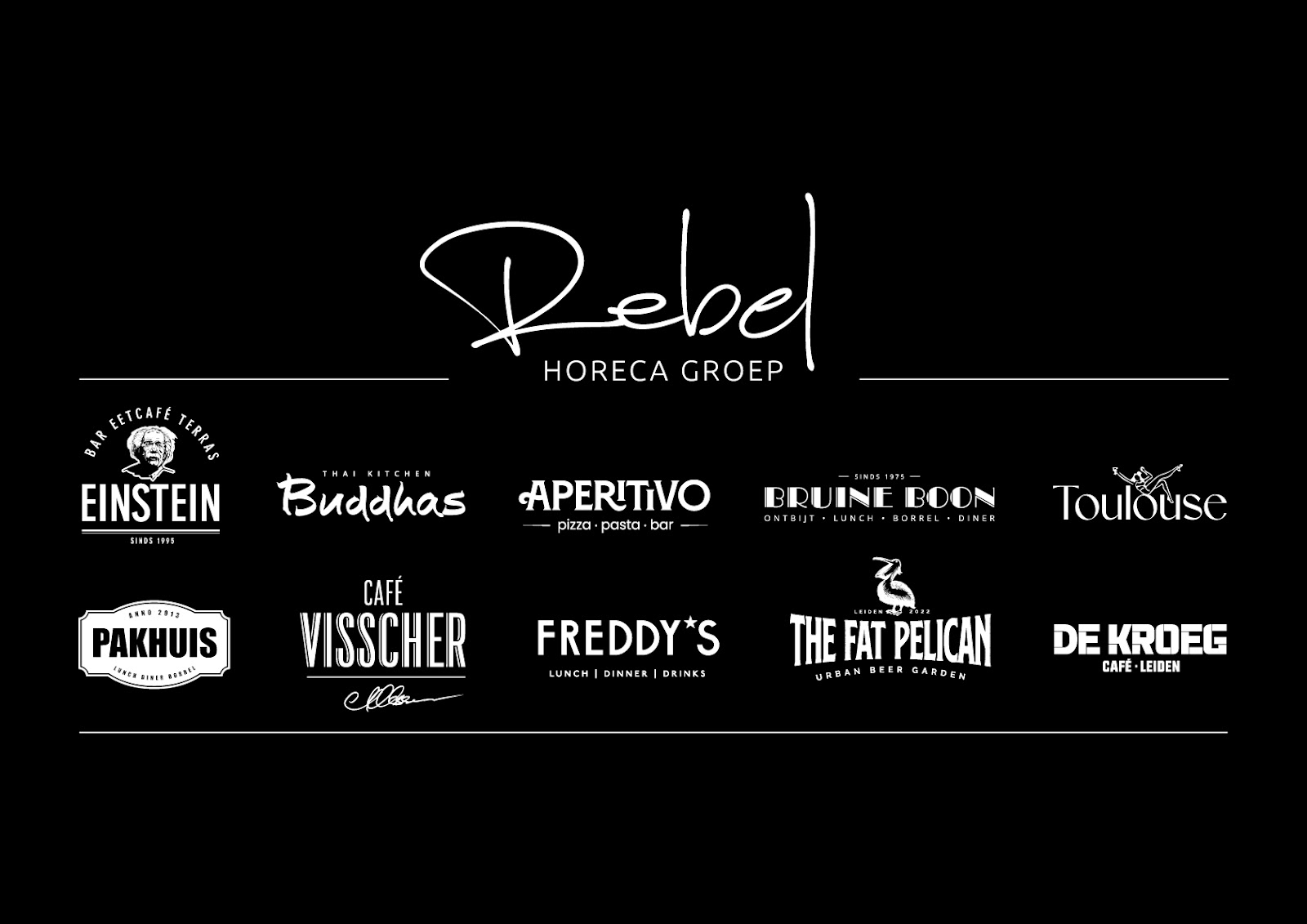 Rebel Horeca Groep aan de Pieterskerkgracht is een veelzijdige horecagelegenheid die meerdere concepten onder één dak combineert. Van gezellig borrelen tot uitgebreid dineren — Rebel biedt een eigentijdse ervaring in een prachtige setting aan een van de mooiste grachten van Leiden. De menukaart is divers en de sfeer is ontspannen maar stijlvol. Met uitzicht op de Pieterskerk is het terras in de zomer een absolute aanrader.